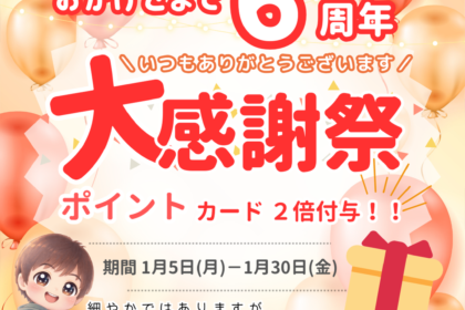祝 5周年 感謝イベント 【大好評につき延長決定‼】 皆さま、たくさんのご利用ありがとうございます! 5周年記念イベント...